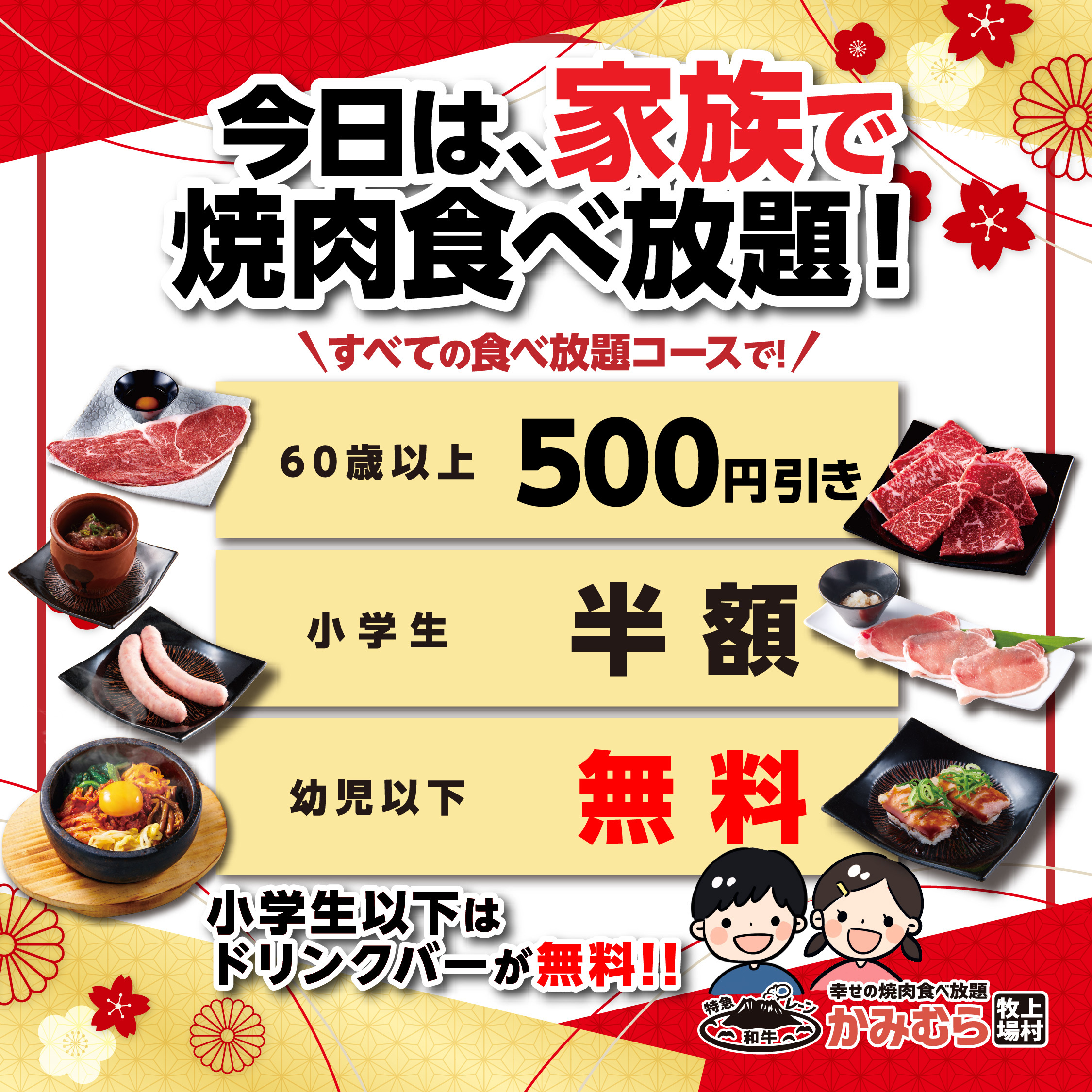 【かみむら牧場】新春・成人の日ウィーク特別企画!早割でお得に焼肉食べ放題!