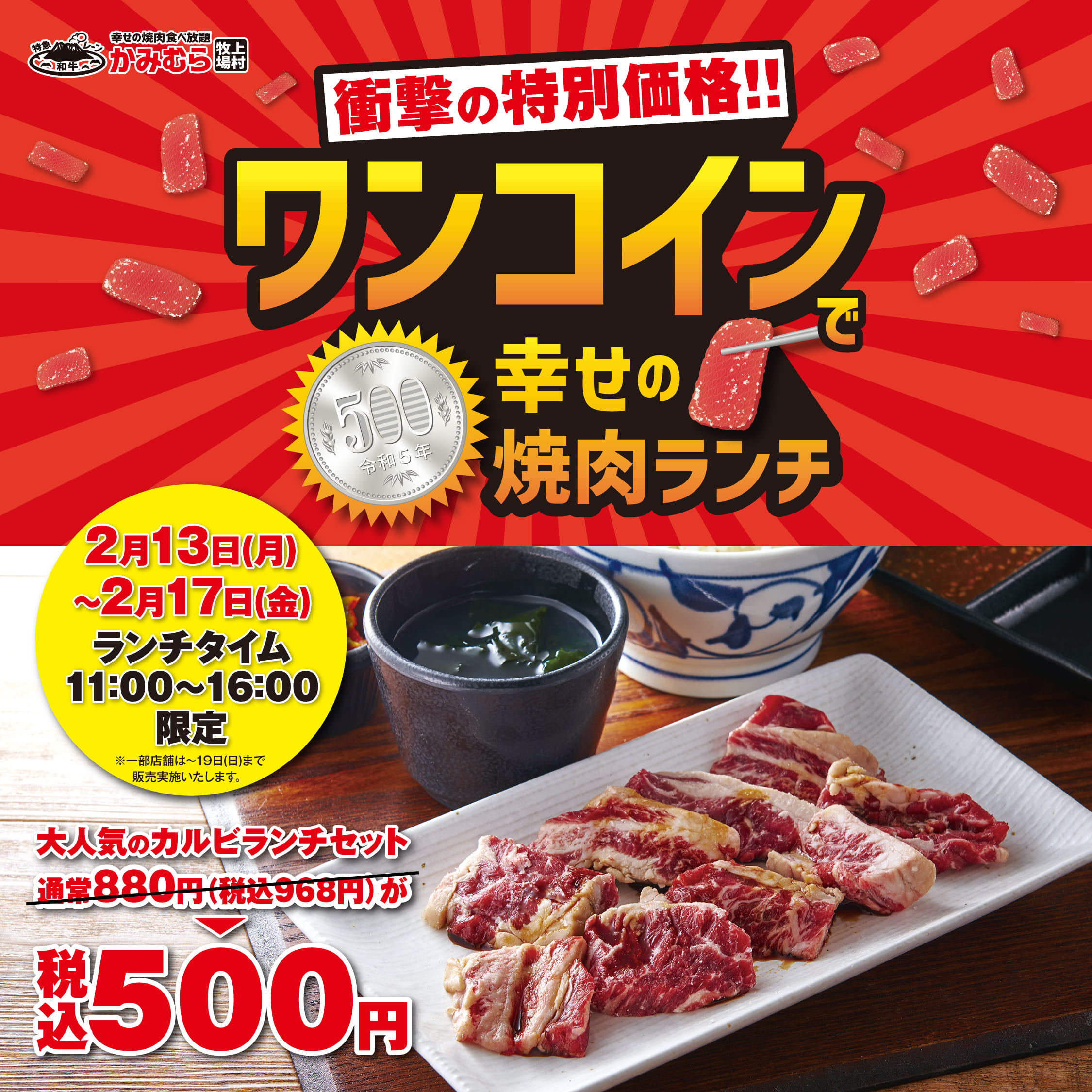 衝撃の特別価格で幸せの焼肉ランチ‼ワンコインで「カルビランチセット」を特別販売‼