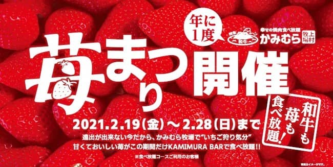 2月19日(金)より「苺まつり」を実施します!期間内は 「和牛×いちご食べ放題」