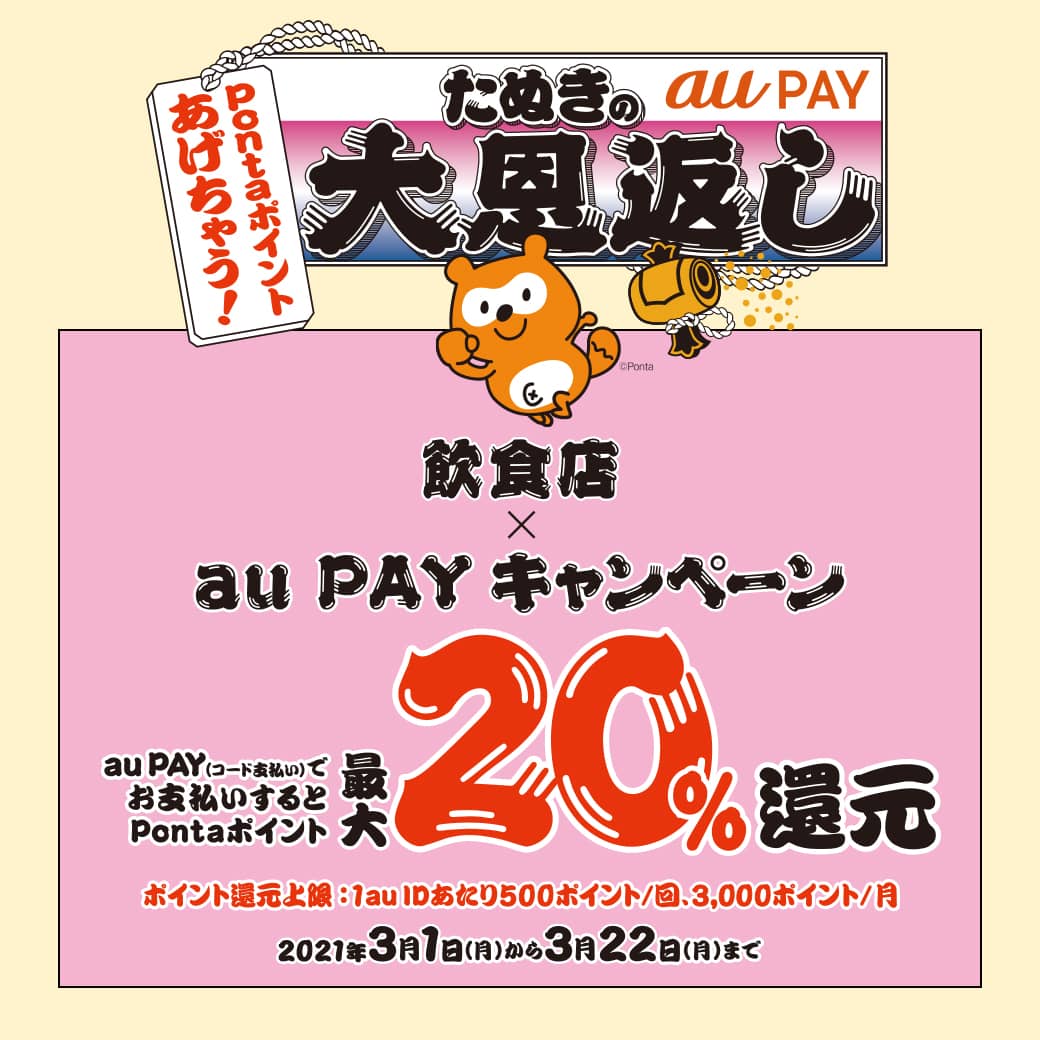 更に「かみむら牧場」京急蒲田店・府中店ではau PAYの還元キャンペーン「たぬきの大恩返し」において20%のPontaポイントを還元いたします。実施期間:3月1日(月)~3月22日(月)まで。