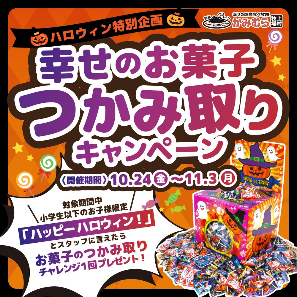 【かみむら牧場】ハロウィン特別企画「幸せのお菓子つかみ取りキャンペーン」を開催 ~小学生以下のお子様限定!「ハッピーハロウィン!」で楽しい体験を~