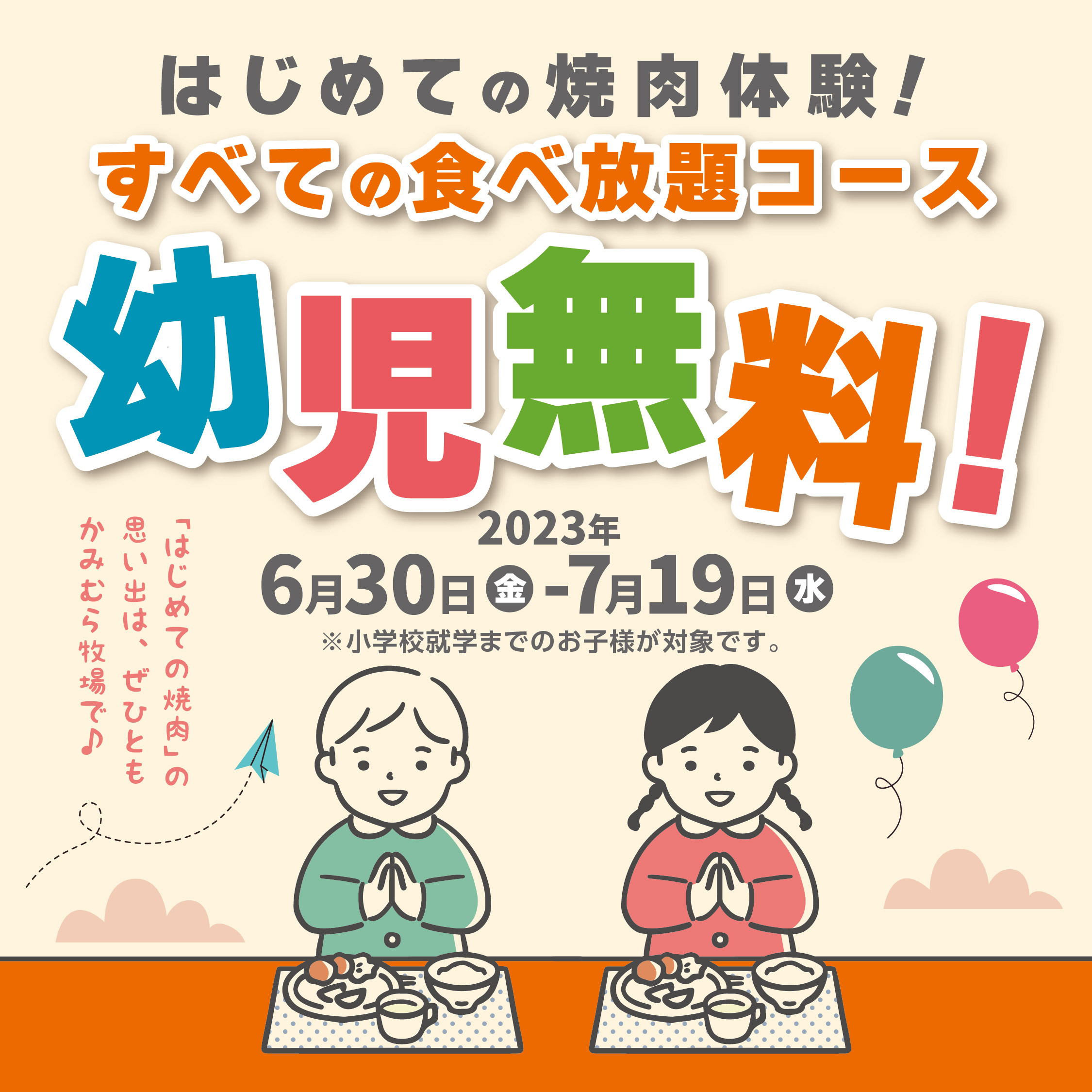 「はじめての焼肉体験」の思い出は、かみむら牧場で!6月30日(金)からの20日間、すべての食べ放題コースを「幼児無料」でご提供!