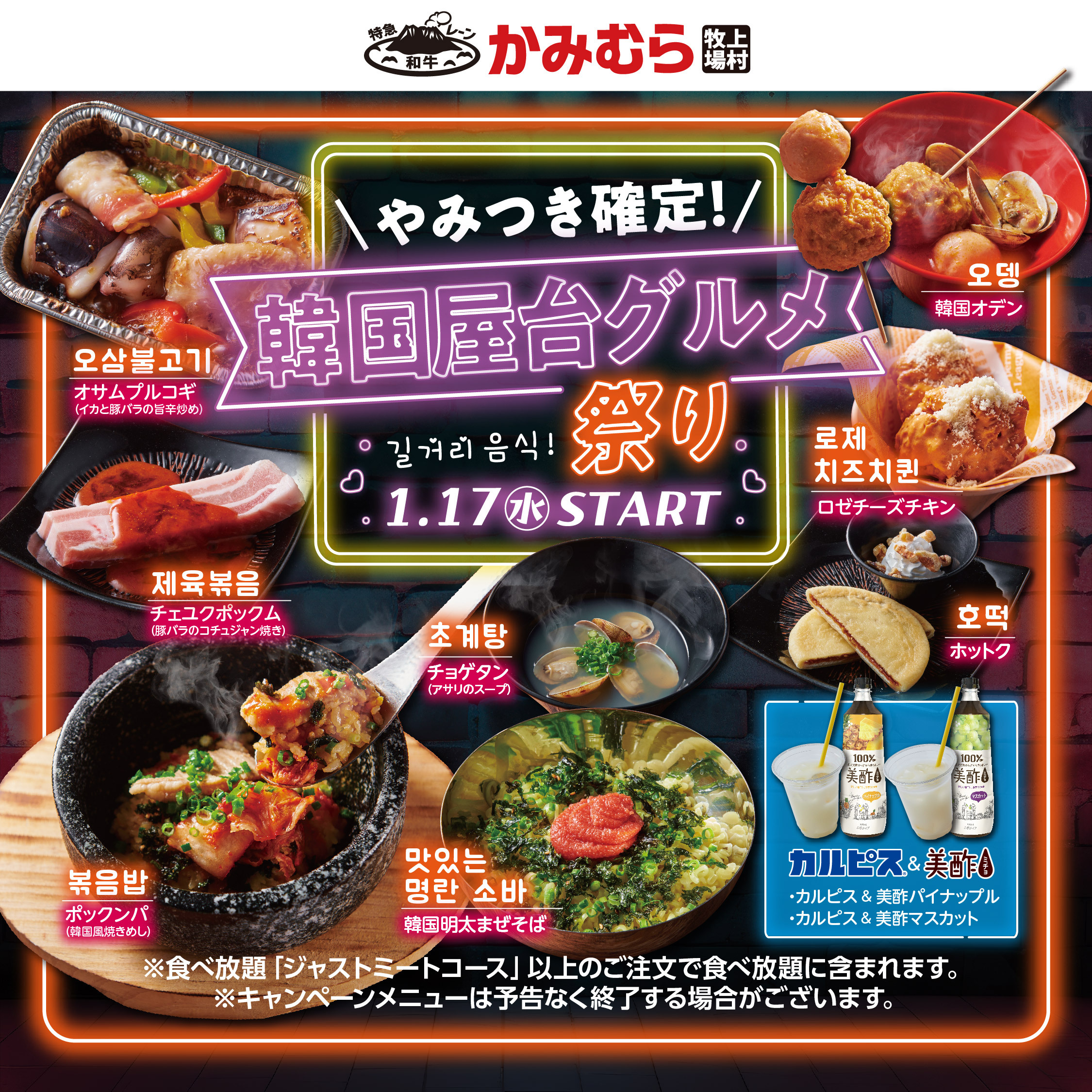 韓国フェア第2段‼8種の韓国グルメが食べ放題に新登場!期間限定「韓国屋台グルメ祭り」開催‼
